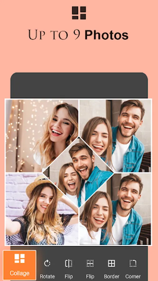 Our photo collage maker has an inspiring and usable interface that will help you to reveal your creativity. With our various filters and frames, the creation of love photos will be easy and exciting. Just open the app and start: edit layout, add text to photos, make a pic collage, select filters, add stickers, use photo effects - enjoy! Don’t forget to write a few warm words or place some text on photo, express your feelings!