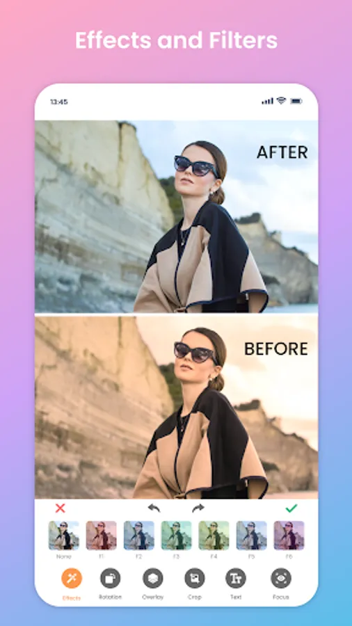 - Bring different features of picture editor such as rotation, crop, overlay, edit text, put frames, stickers and draw anything.