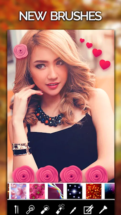 Brush feature in the Photo Editor: Beauty Camera Filters, Selfie Effects application allows its users to draw on the pictures or images. Users can use a number of colors to write with the opacity options as well. Write, highlight or make signs on the pictures.