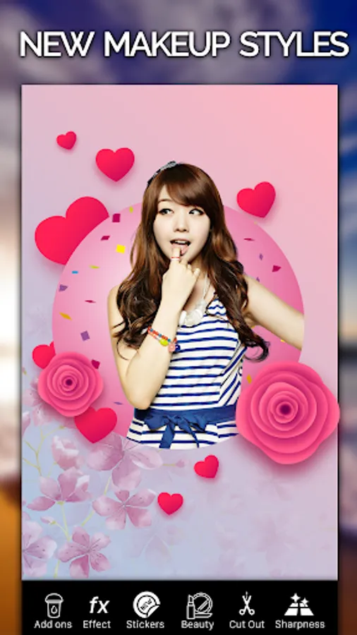 Stickers are available in the Photo Editor: Beauty Camera Filters, Selfie Effects application. Stickers allow the user to express their feelings to friends and family members in a very funny and impactful way. Stickers can make nay pictures and photos funky, alluring and attractive.