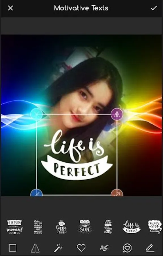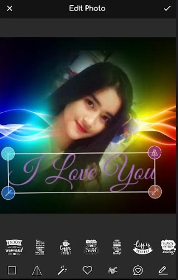 Add text on photo and custom typography using a wide variety of fonts and colors.