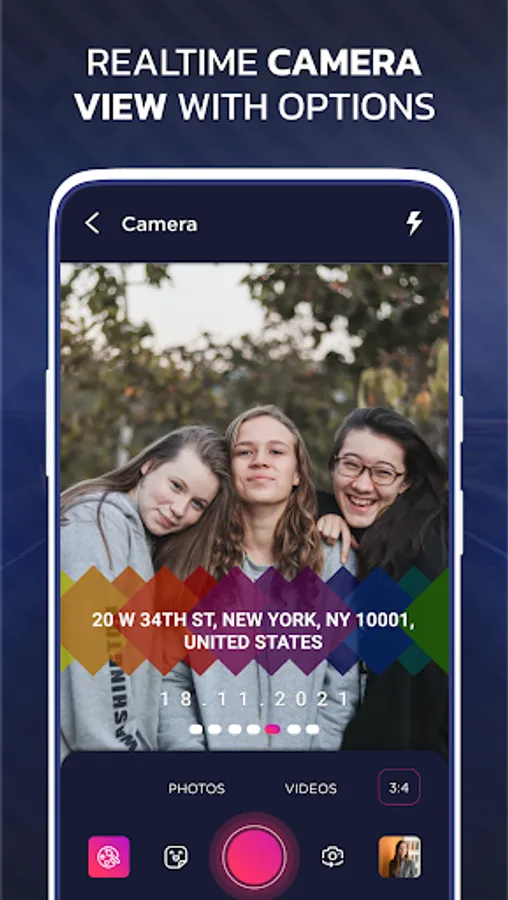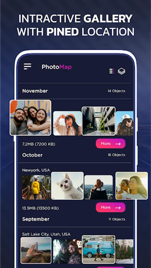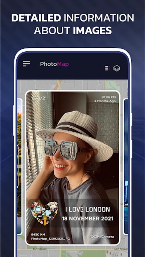 There are two formats of photo view, either you want to view them on the map or you want to view them as in a photo gallery on your cell phone. Photo map also includes skins of location and date in various formats to match your taste or you can also use stickers given in this snap map to make your memories pop.