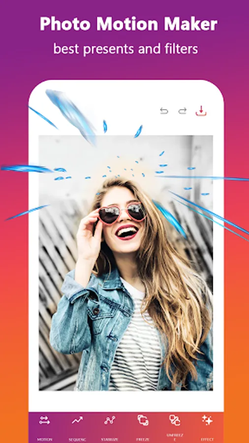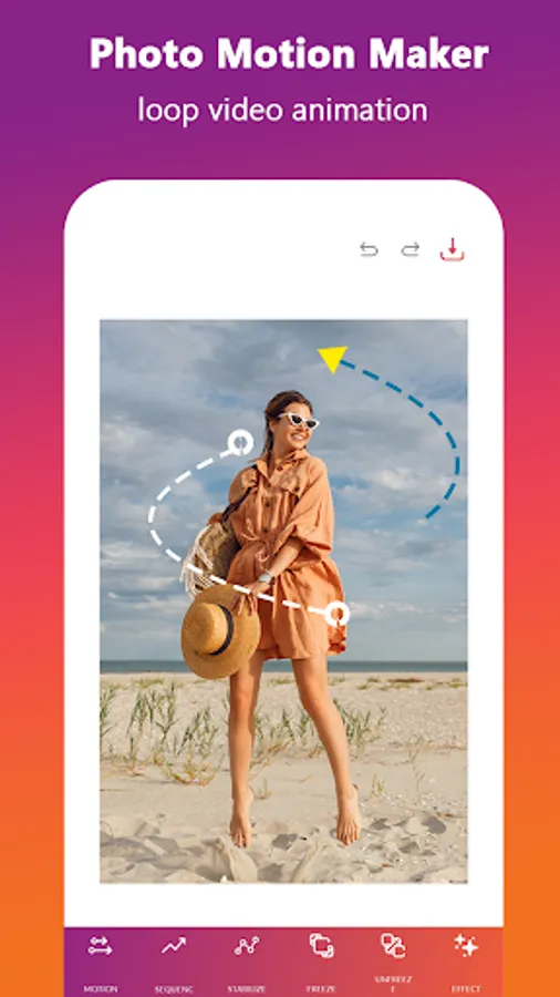 This app allows you to apply motion animation effect on a specific object, just select the area and provide direction for photo motion moving pictures. Using this app you can create background motion picture, live photo to video and animated pictures. You can change easily your pictures to alight motion, live photo and moving image also running photos, motion art and moving background pictures.