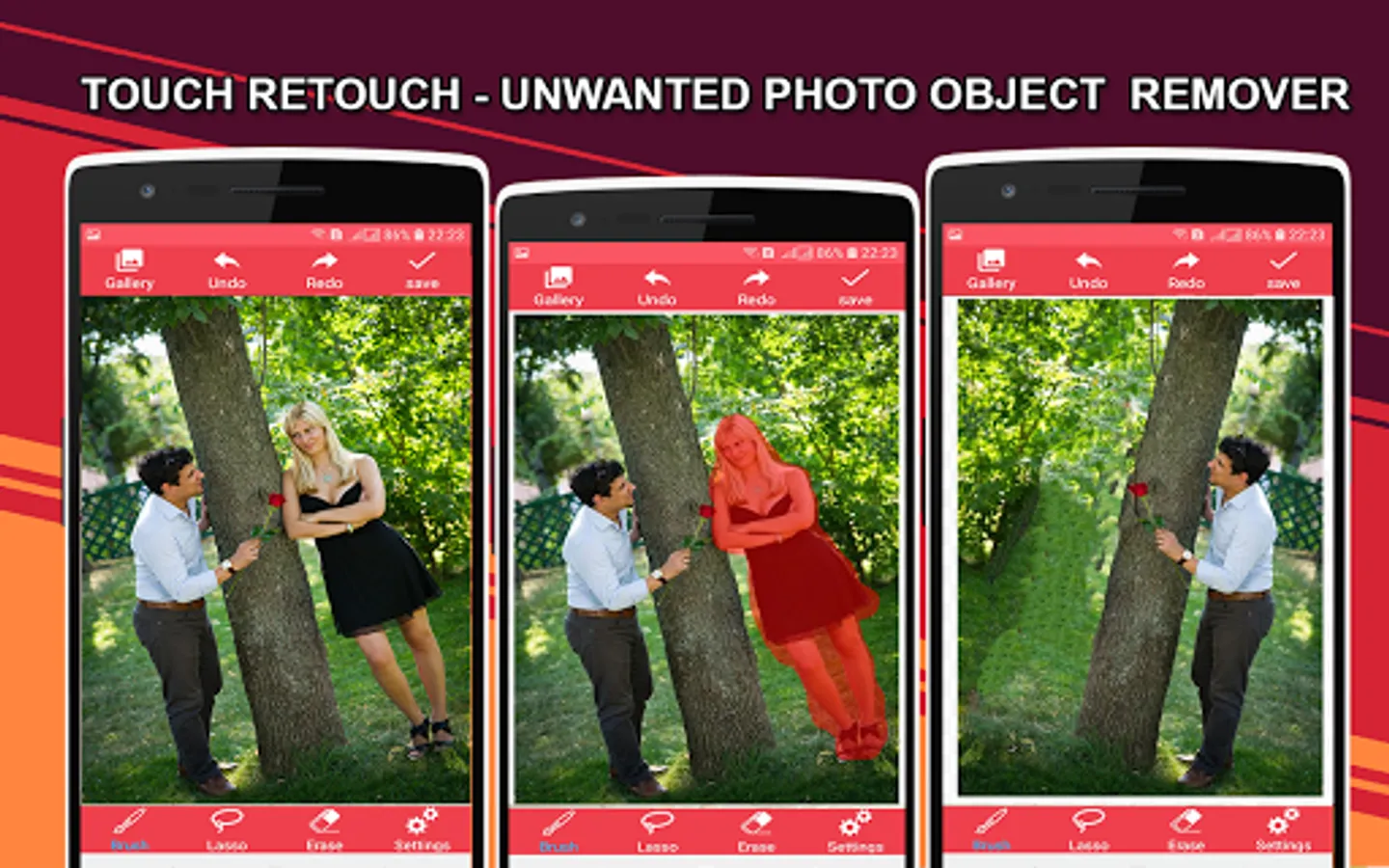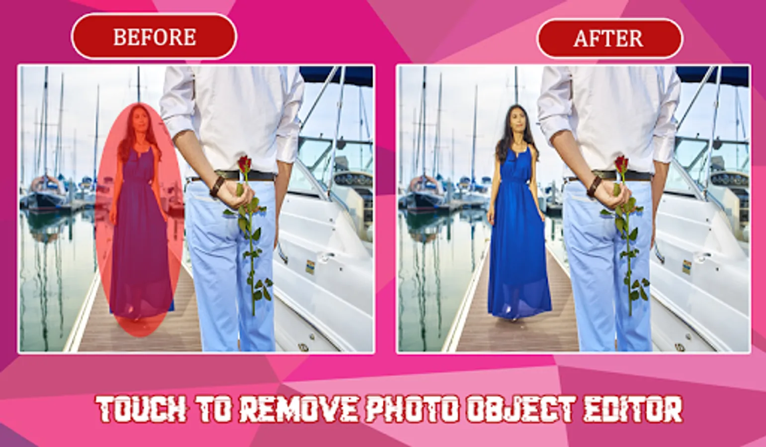 Remove Unwanted Object From Photo - Touch To Remove is a very useful tool to remove unwanted contents or objects from your photo by using just the tip of your finger. App offers you all the latest photo editor tools that you need to remove unwanted content from your photos efficiently, fast and in a easy way.