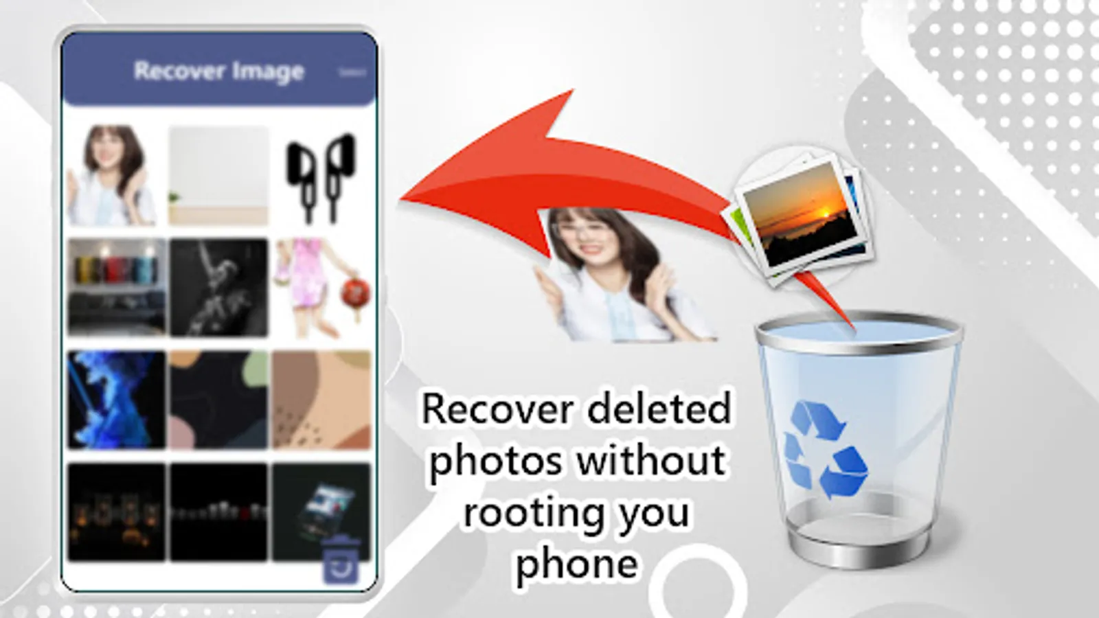 Recover Deleted Photos: Restore Deleted Pictures is a free Image Recovery App that gives you the chance to Retrieve Deleted Photos from your phone. If you have Deleted Photos witch are very important and you want you to Restore deleted pictures, Deleted Photo Recovery can help you in picture recovery and undelete photos. If you have accidentally deleted any photo and you want to undelete photos, android data recovery provides you the service to recover photos quickly. After you Retrieve Deleted Photos, you can simply Restore images to your own gallery. File recovery easily recover images from the .thumbnail folder which is a directory for image thumbnails and you can get back Deleted Images in simple few clicks. Undelete photos and recover data you lost or deleted trash photos with Photo Recovery App.