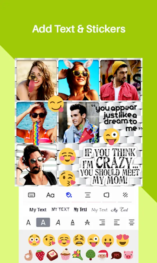 Create shape photo collage from take multiple photos in your phone gallery, Collage Mixer instantly remix them into cool shape photo collage. Large shape collage layout, from them you pick the layout you like, edit picture and decorate it with filters, stickers, texts and much more.