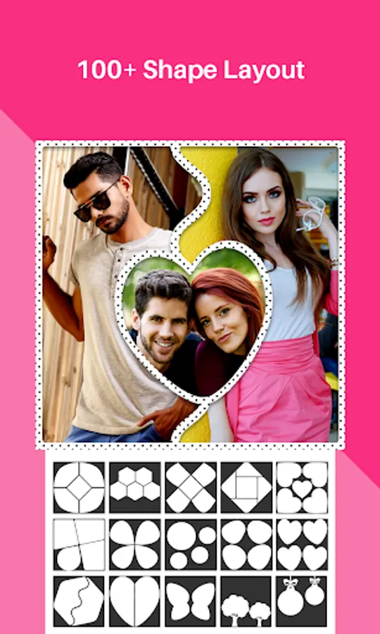 Full-featured app that contains Shape Collage Mixer & Photo Editor, offers 500+ layouts, frames, backgrounds, templates, stickers & text fonts to create cool shape photo collage.