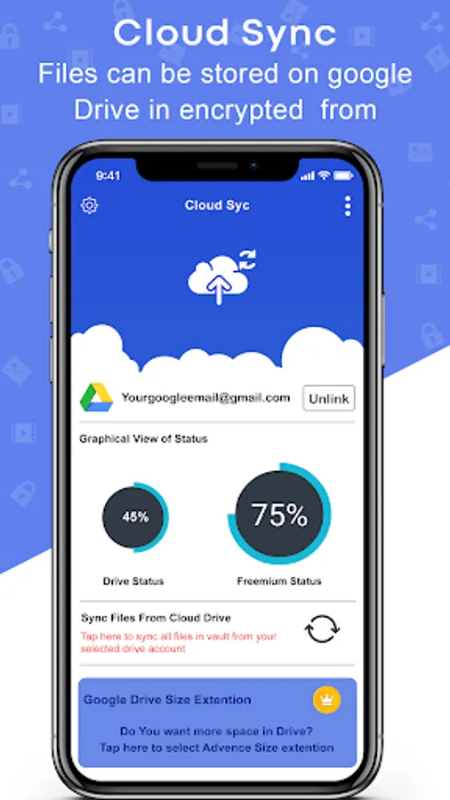 - App can used as Cloud gallery for storage photo and video on cloud.