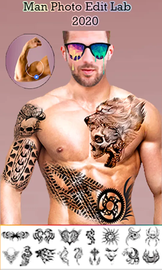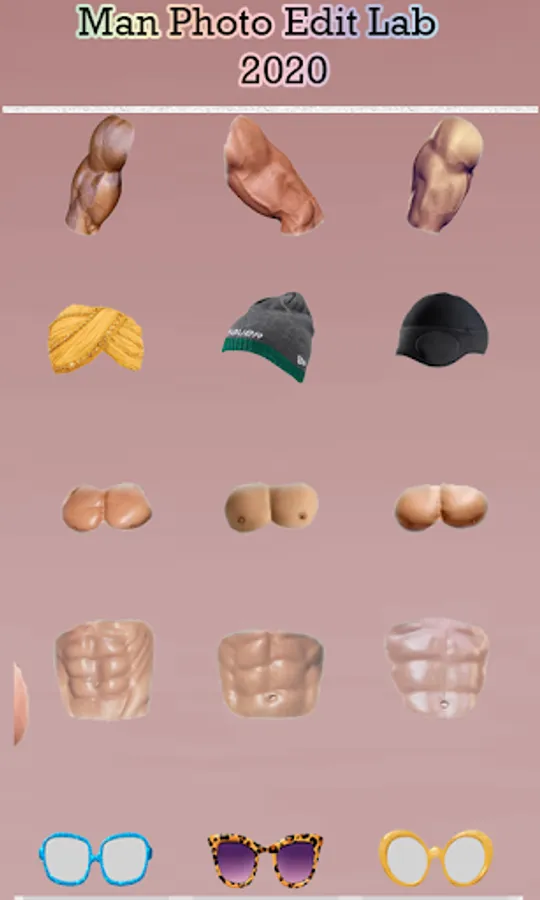 Edit Hair,Mustaches Editor,Beard Photo Maker latest,Sun Glasses photo Frames,Tattos on Body Male female,Tie ,Cap photo editor,Six Pack photo editor,muscles Apply on your images.
