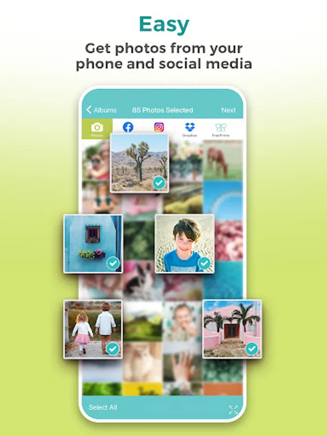 Ordering your free prints couldn’t be easier. Just open the app and select photos from your phone, Facebook, Instagram and more. Then choose your quantities and you’re done! Your free prints arrive on your doorstep in just days – and all you pay is a small shipping charge.