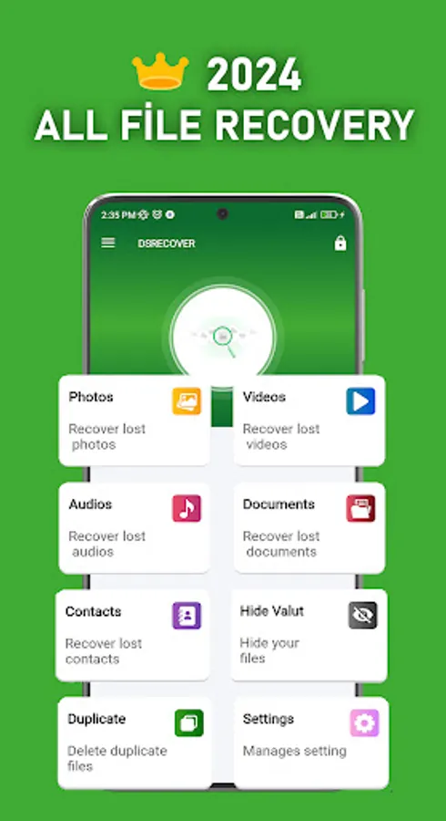 The main idea and function of the DS-Recovery is to recover all Deleted Files for android. Ever deleted photos, video or sound (Audio) by accident❓