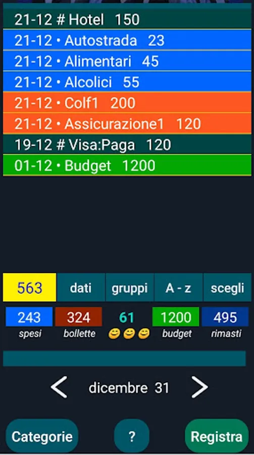 Color coded display to easily track your expenses, income and easily be able to distinguish between the types.