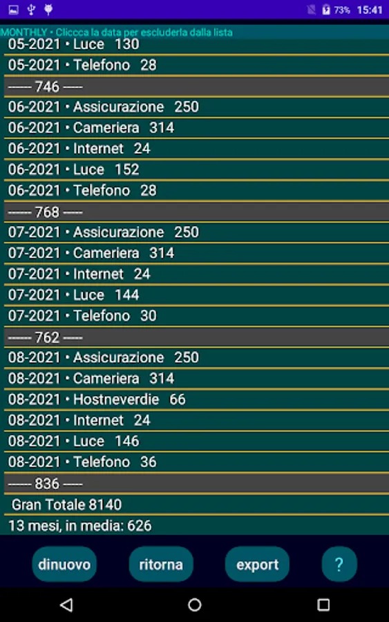 Set up your fixed expenses - After downloading the app you will be directed to a page with a listing of the most common fixed expenses with zero value.