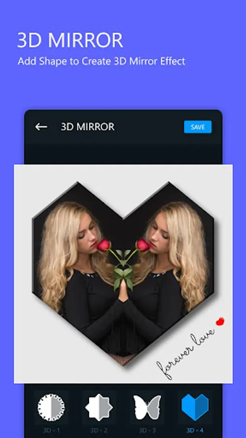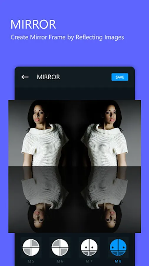 3) Mirror Photo Editor to make simple photo frame that lets you create amazing reflections of your photos.