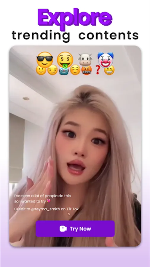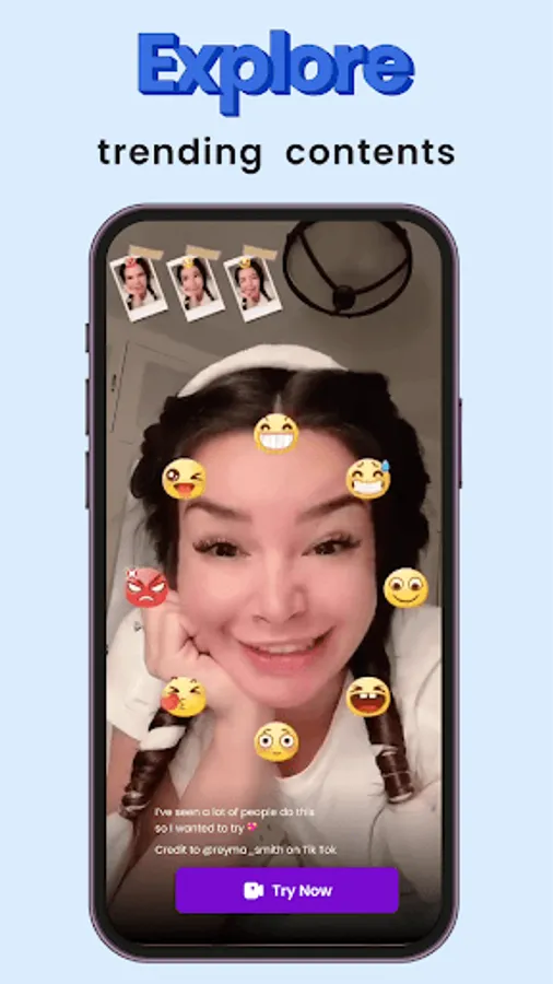 Discover TikTok Trends and create incredible photos and videos with funny face filters. Download this app and experience the exciting things emoji challenges bring you.