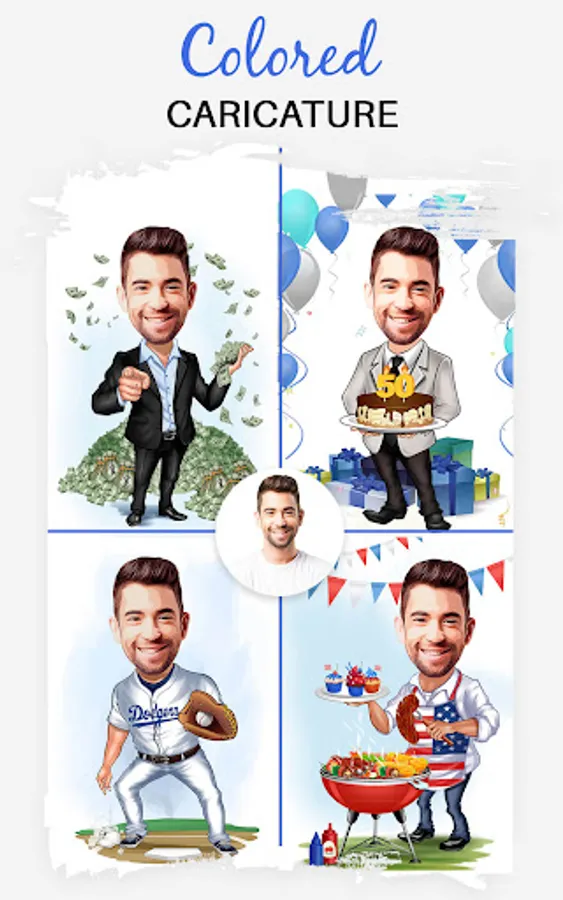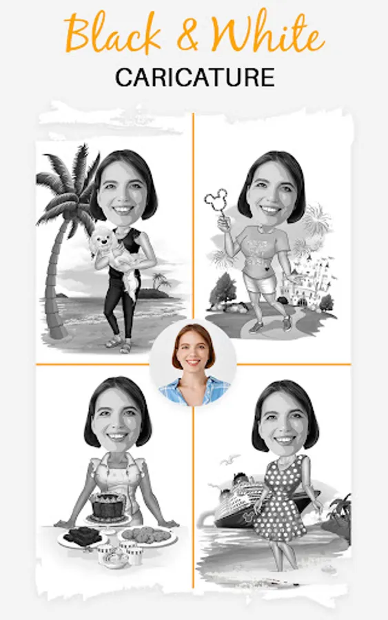 Photo cartoon caricature Maker app allows you to change your face with hilarious caricatures and transform your photo into caricature. Turn your photo into caricature to bring a touch of humour into your life. Be a caricature artist and share your caricature avatar to all.