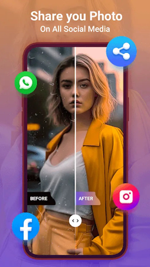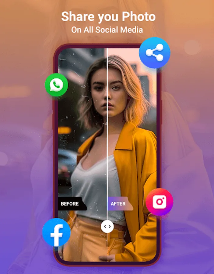 Easily upload and share your photos with friends, family, and even with your social media handle with Photo enhancer images.