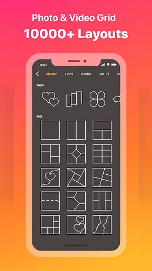 ¤ Grid Create photo collage with hundreds of layouts in seconds.