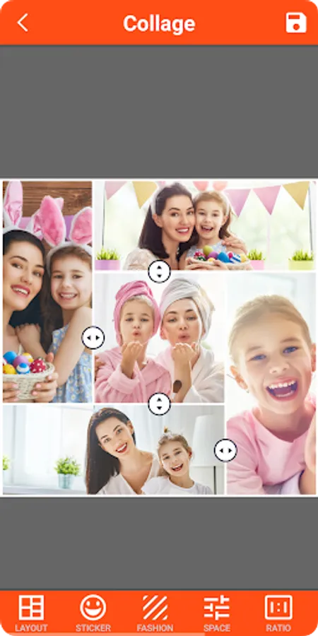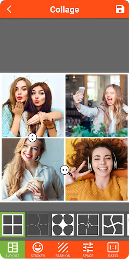 - Choose multiple photos from the gallery and choose layout shape from 1 to 15 photos.