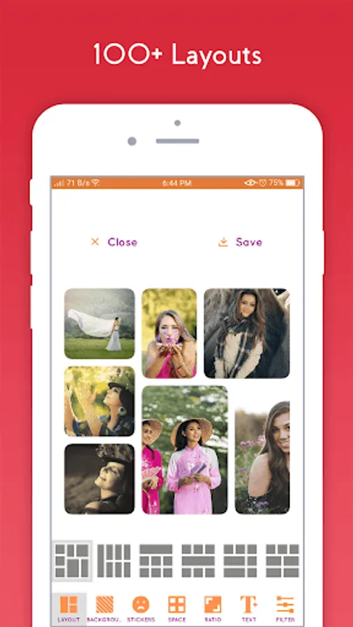 - Set background to your collage with Photo, Texture, Color and Gradients.