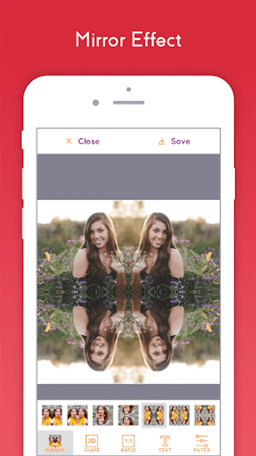 - Give Mirror Effect to your photos and collage from wide rang of effects