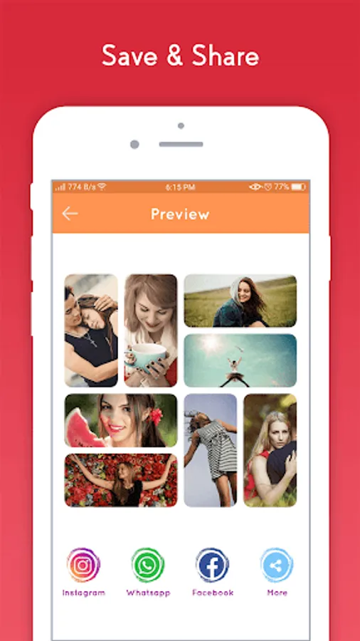 You have to just select several photos, Photo Collage Maker - Photo Editor & Auto Collage instantly remix them into cool photo collage. You can choose collage theme you like, edit collage with multiple filters, sticker & emoji, add text with selected font and much more.