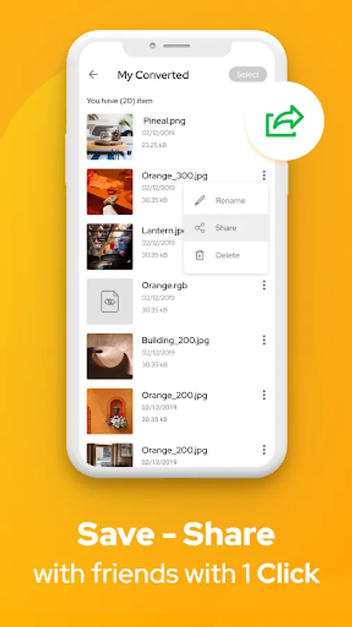 β Easily save and share successfully converted files for friends when using the Image Converter: JPG to PNG & Picture Converter app.