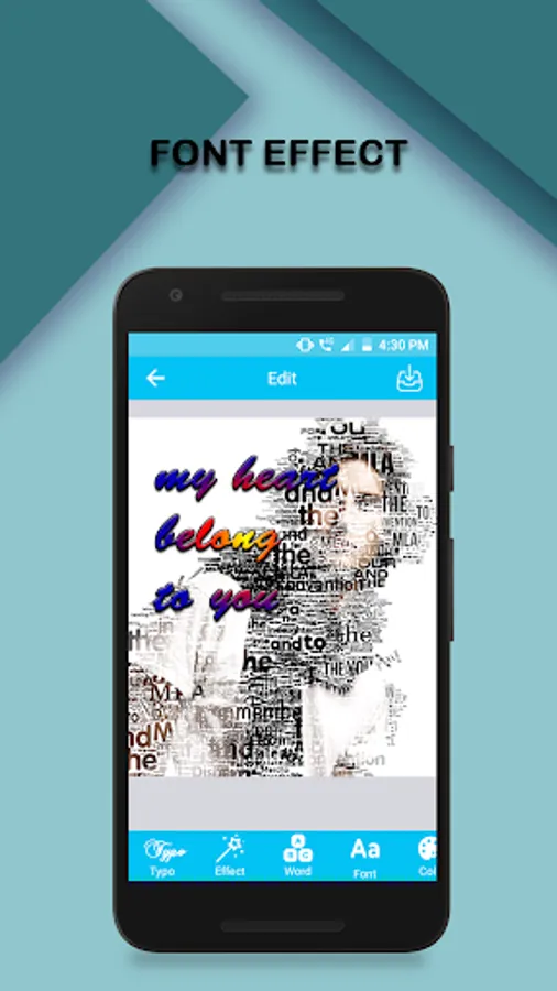 Typography Photo Effect is an innovative Photo Maker application in which you can make your typo effects photos.