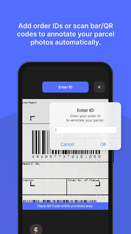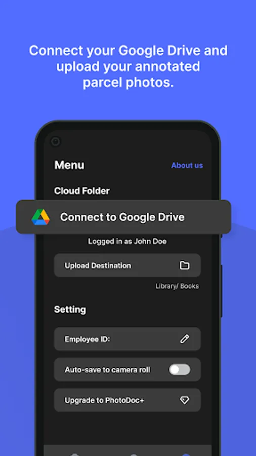 PhotoDoc makes it easy to organize your photos and add annotations as watermarks. You can connect your Google Drive, take parcel photos, and automatically add annotations by scanning barcodes and QR codes or inputting order IDs