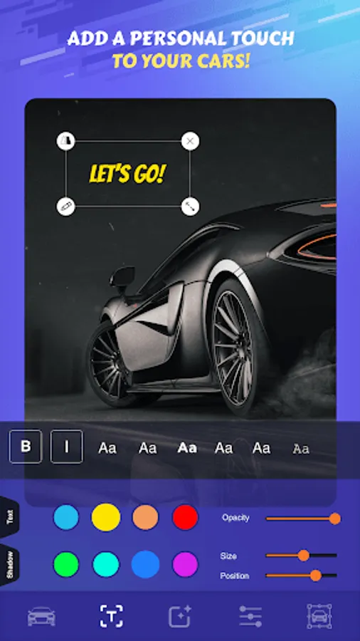 - Share functionality: Showcase your edited car images on social media platforms with ease.