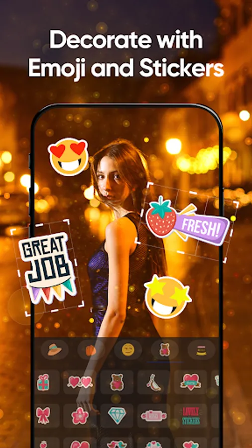 • Enjoy the fun in the photo editing with hundreds of different stickers