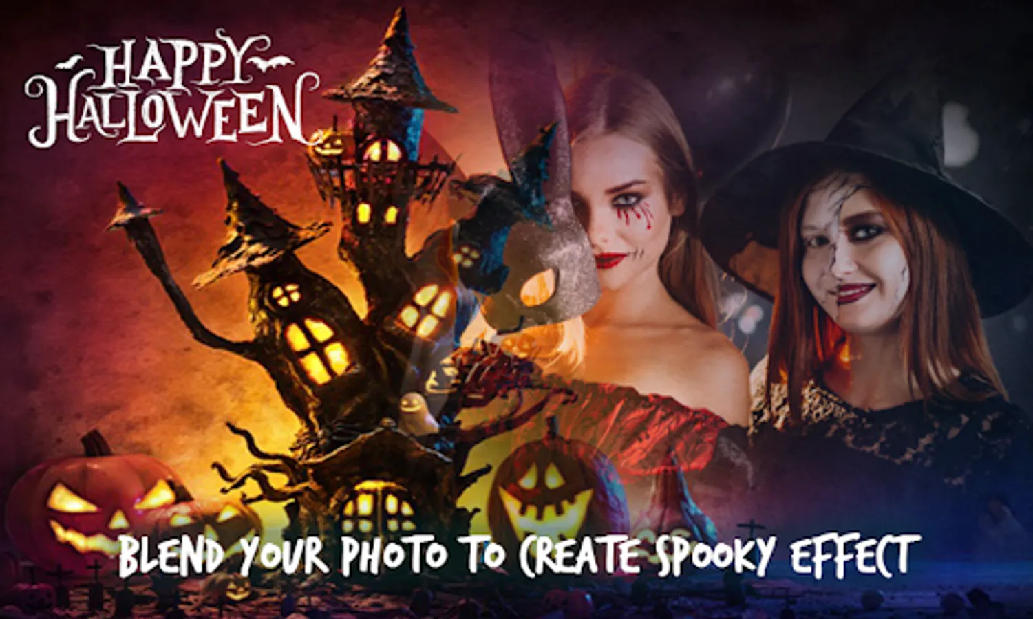 Happy Halloween Photo Blender Editor is an awesome application. This Halloween Photo Editor lets you can combine and blend two or more images with advanced blending tools to double exposure collages for that spooky Halloween ghost camera effect.