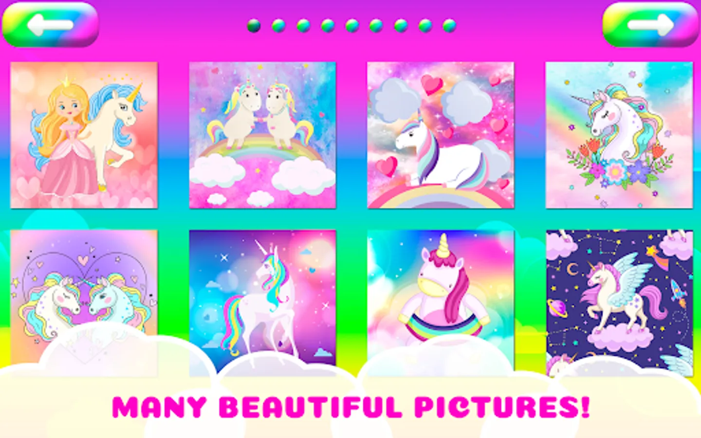 🌈 Unicorn Puzzles for girls has many cute unicorns pictures absolutely FREE! Find your favourite unicorn!