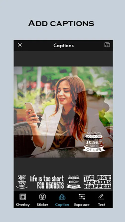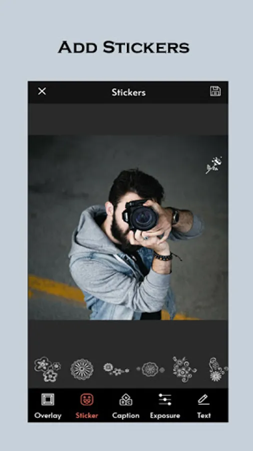 You can do instantly stunning decoration of your picture with the beautiful overlay stickers and caption write text on photo and make funny , cute photos or add text with great quote in your photo to make them deep.