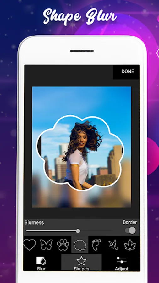 You can apply any of the inbuilt shapes (like heart, butterfly, star, cloud, and many more)