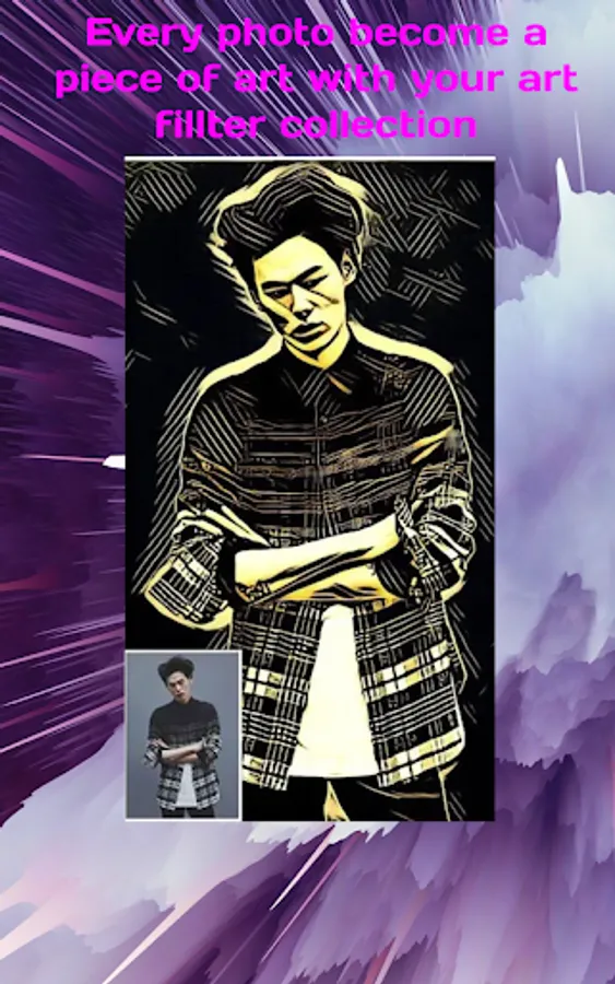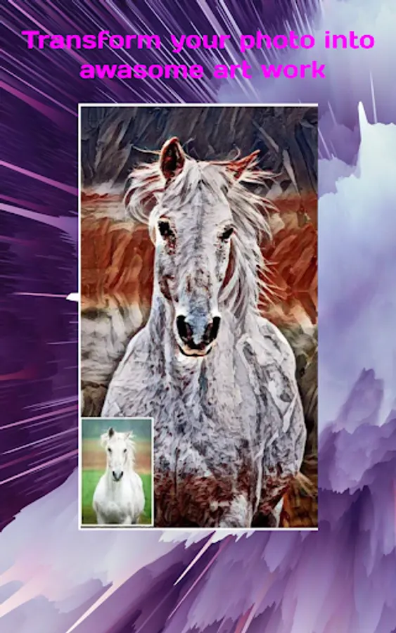 App provide painting photo convert from original photo. App included different different style photo so user can easily convert photo to painting photo.