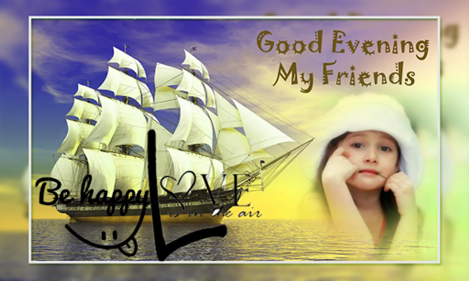 Good Evening Photo Frames is a powerful Photo maker for you to create amazing picture using your photos,amazing magical effects stickers, text with cool fonts and unlimited frames.