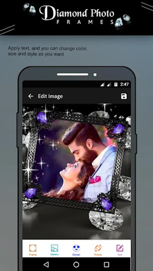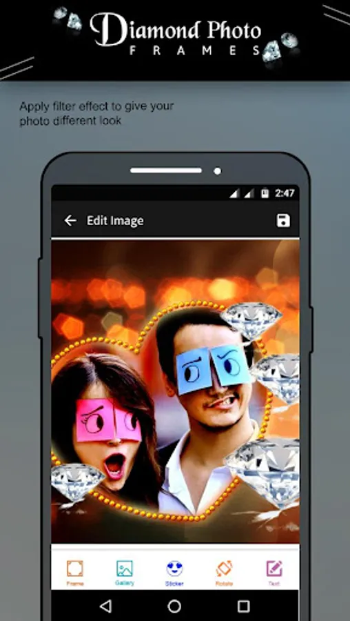 This Diamond Photo Frame app has some new and latest diamond effect frames which look very realistic and happening with diamond photo frames.