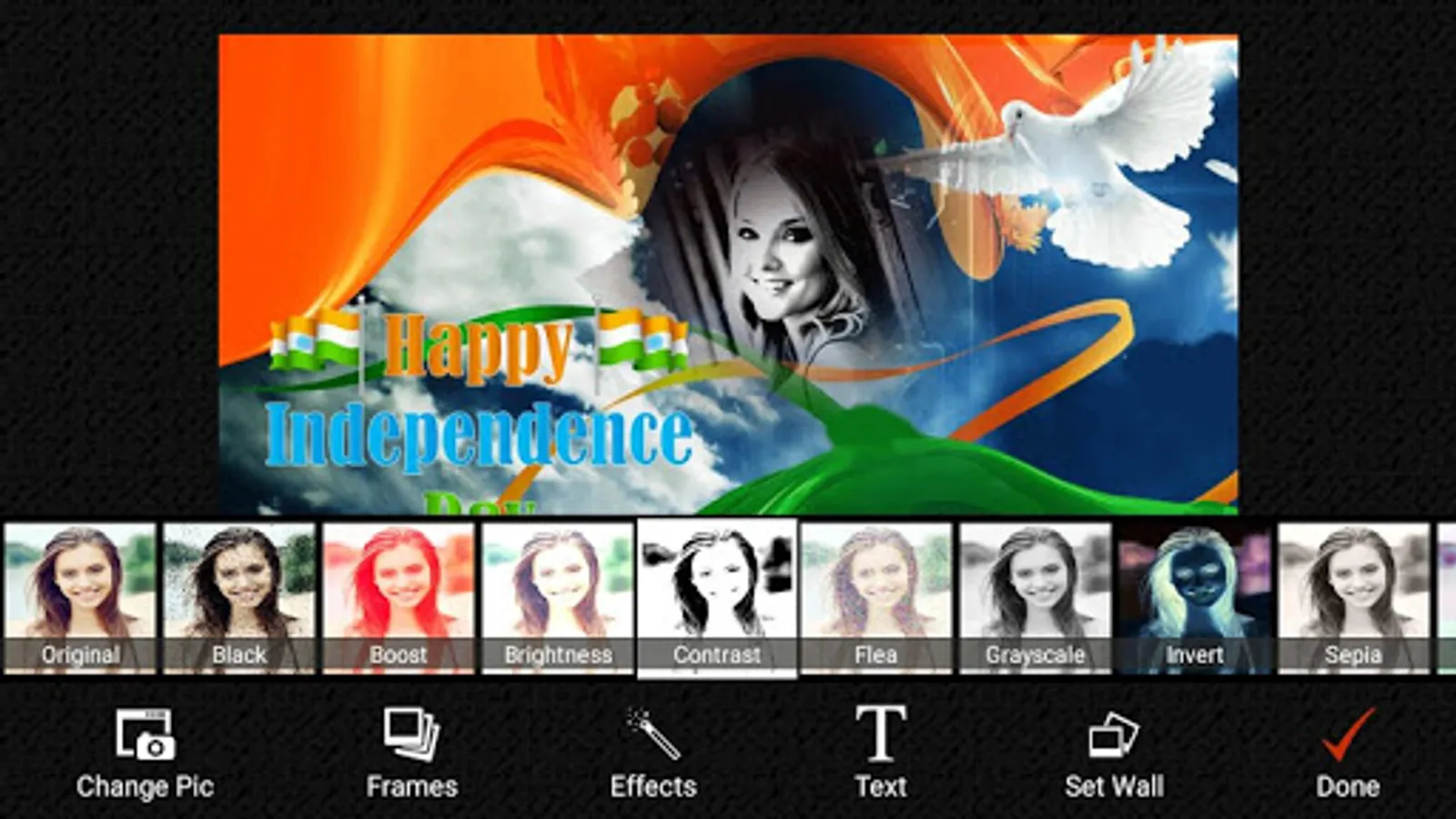 It offers a different variety of photo frames highlighting the Indian flag images with special designs.