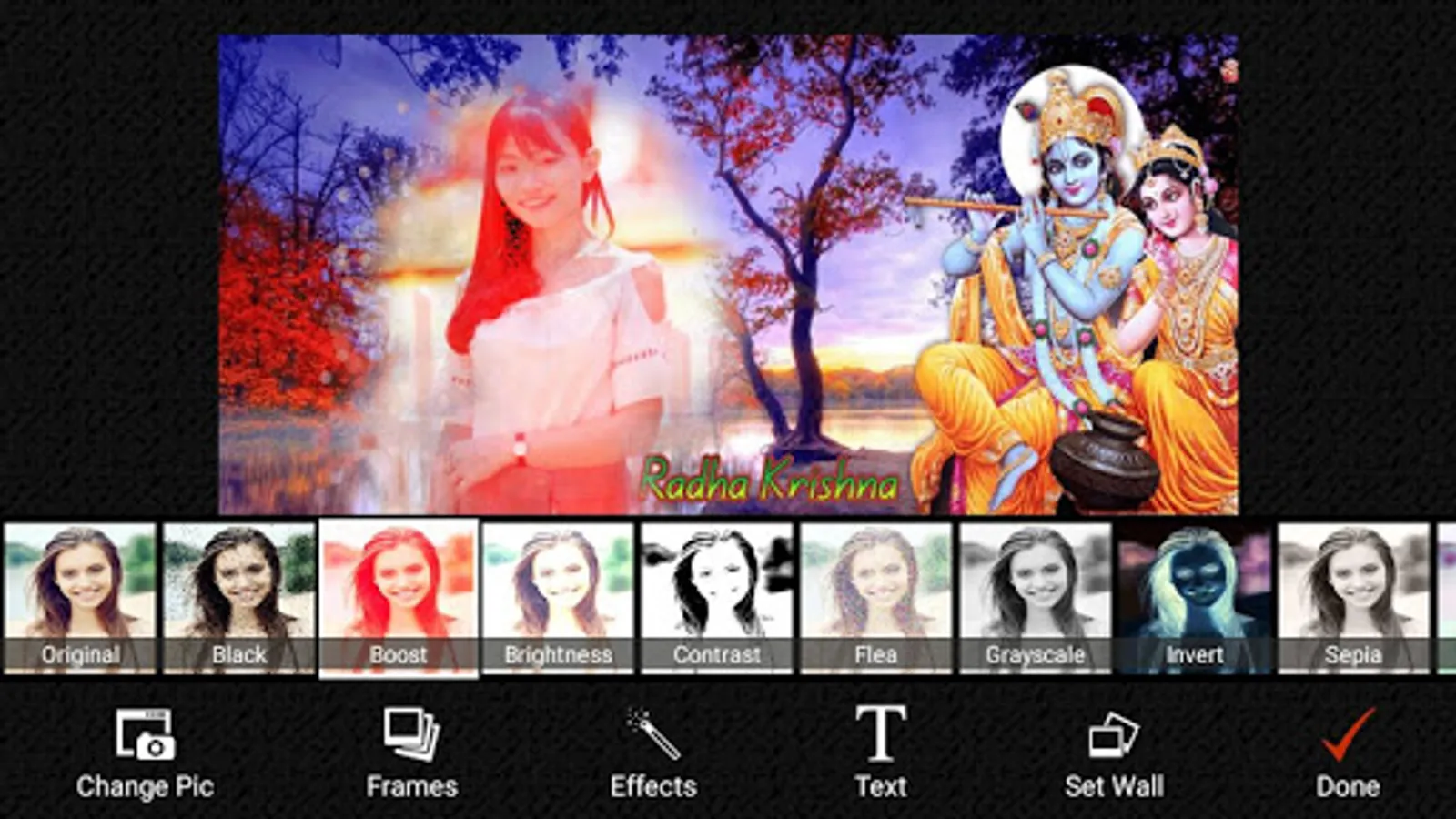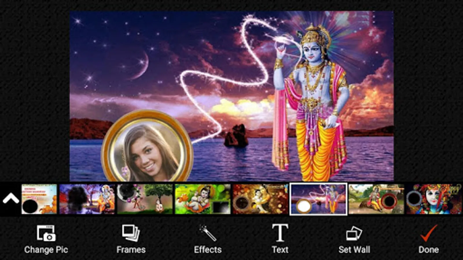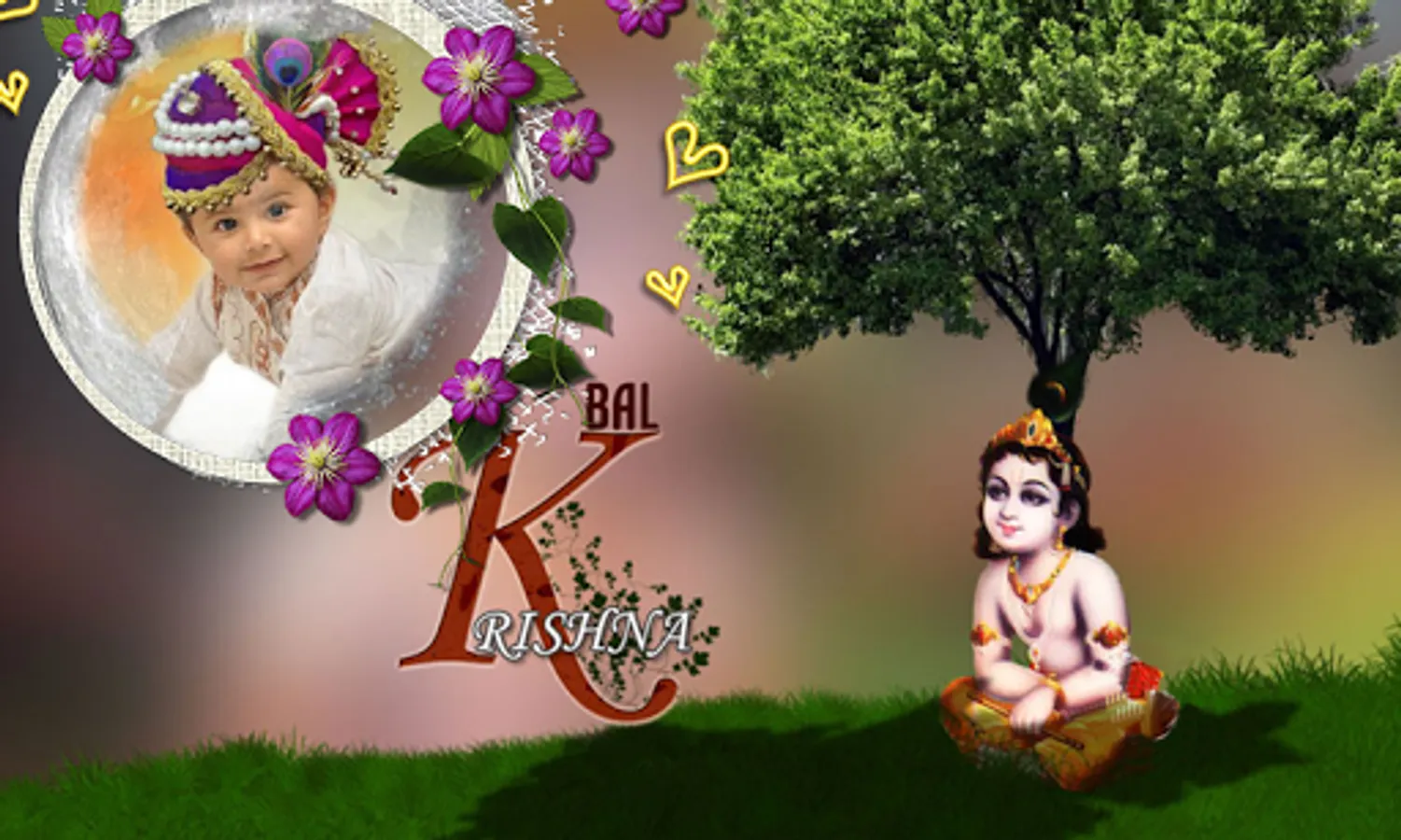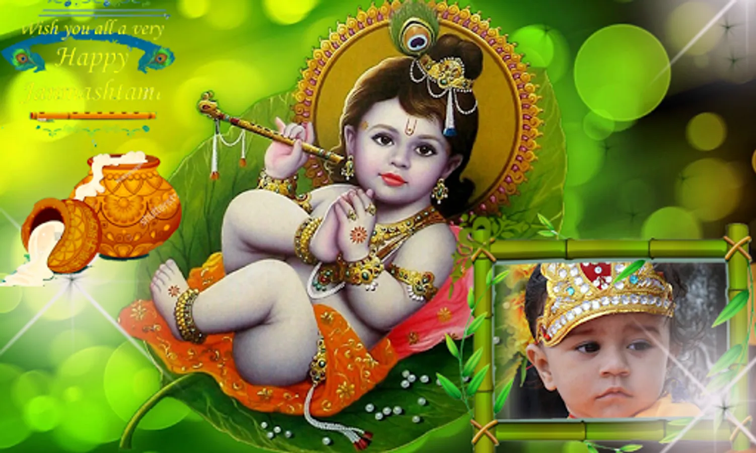 You can paste your photo in HD Krishna photo frames and set the photo angle as you need make beautiful and attractive lord Krishna photo banner.