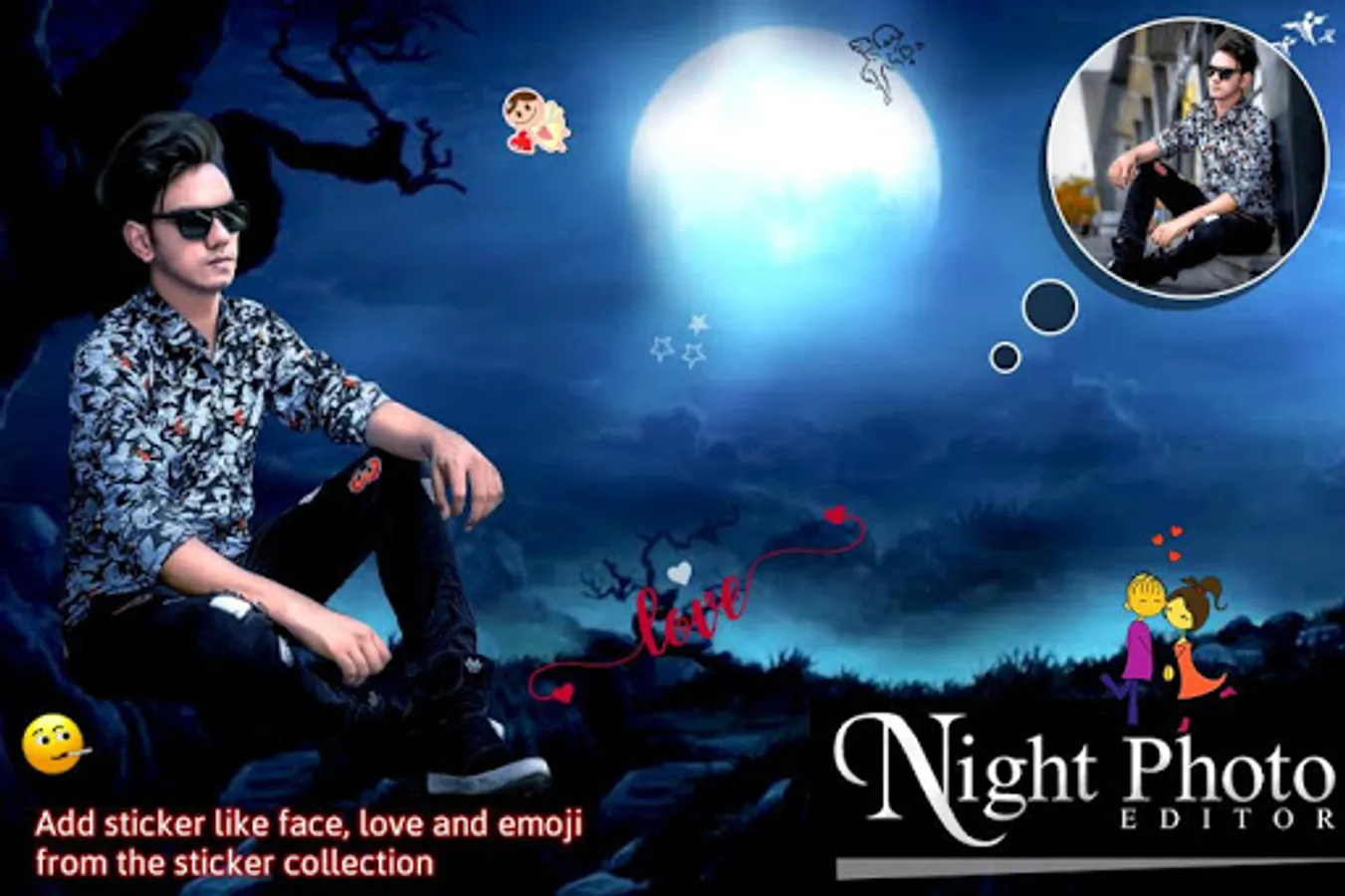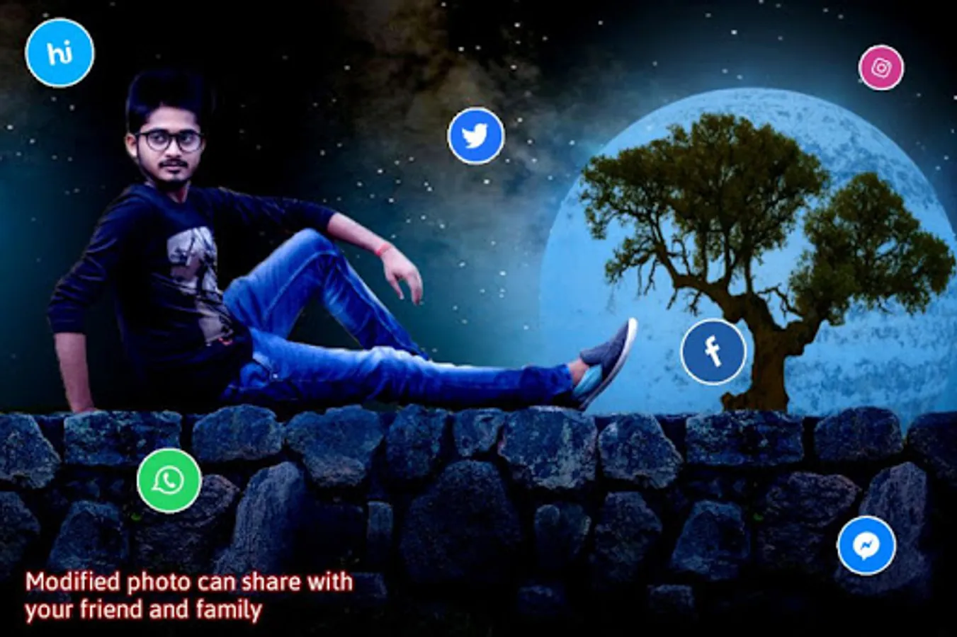 Create your unforgettable memories into moonlight night frames amazing nights so special with lighting stars, text, emoji’s, stickers with natural places that you feel it as real photos.