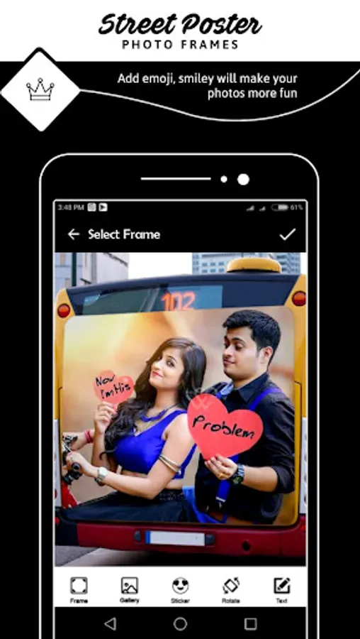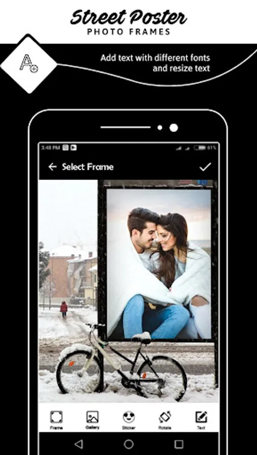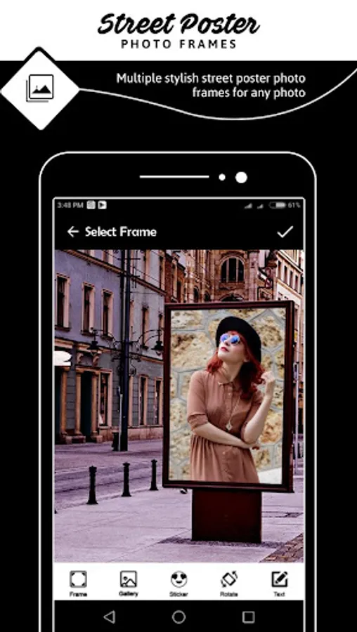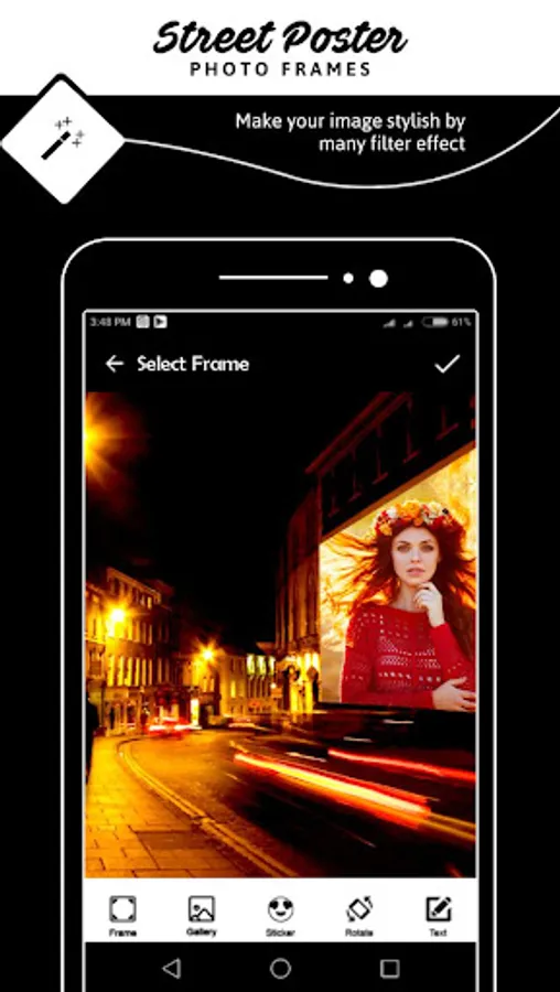 Street Poster Photo Frames App has text, stickers, frame and emoji add into your photo to create a beautiful look.