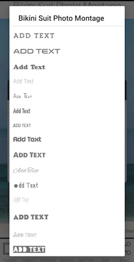With Bikini Suit Photo Montage you will have cool montaged photos with beach and summer effects. Choose a picture from the gallery or take a picture of yourself and set your face in bikini suit montage. Save those beautifully decorated pictures in your device or share them through social networks and you will have plenty of likes and comments. Prank your friends and make them laugh. Download favorite photo frames and use them all the time. Let the beauty of summer enrich your pictures and enjoy pictures with popular bikini photo montages.