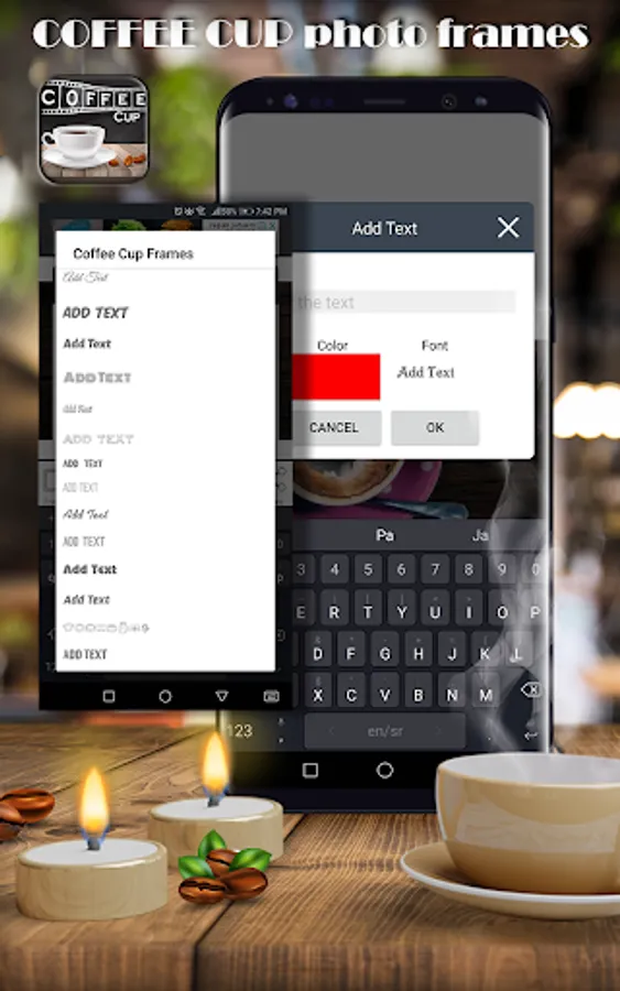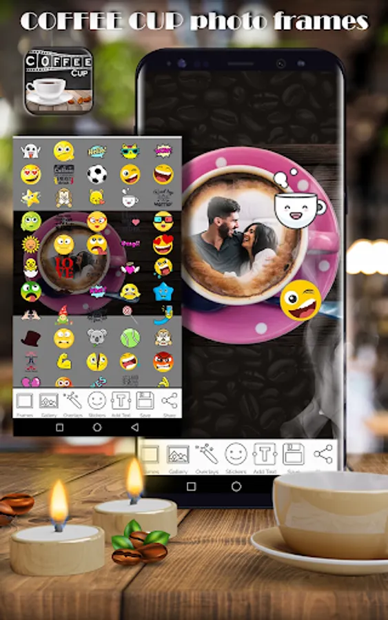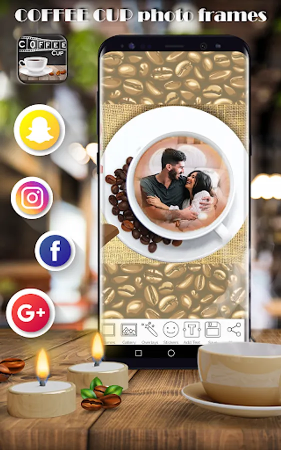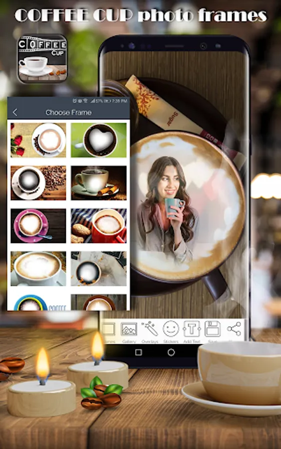 Put photos of you and your loved ones in a lovely coffee frame and send them to your friends and family. Download this amazing coffee cup photo frame app.