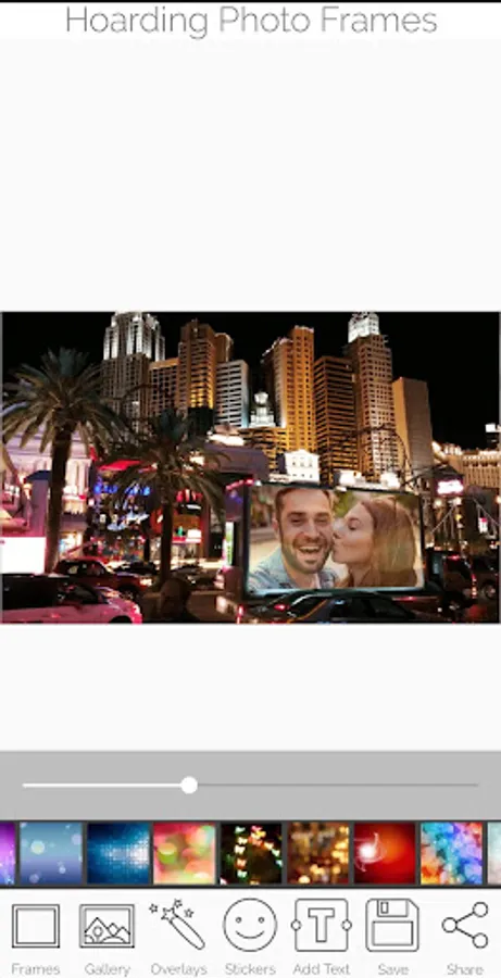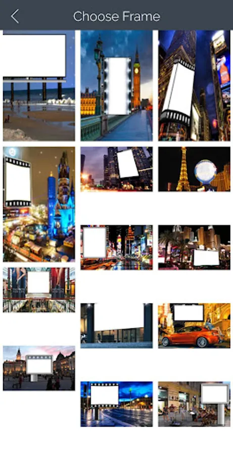 With billboard photo frames you will have the best photos. Choose a picture from the gallery or take a picture of yourself or your loved ones and use photo frame effects on them. Save those beautifully decorated pictures in your device or share them through social networks. Download favourite billboard photo frames and use it all the time. With picture frame effects you will feel that you are a movie star. Big picture on the top of some building or in popular places in the world will provide you feeling like you are an important person. Animate your friends with this cool application. Transform old pictures in the best new pictures with the best photo frames app.