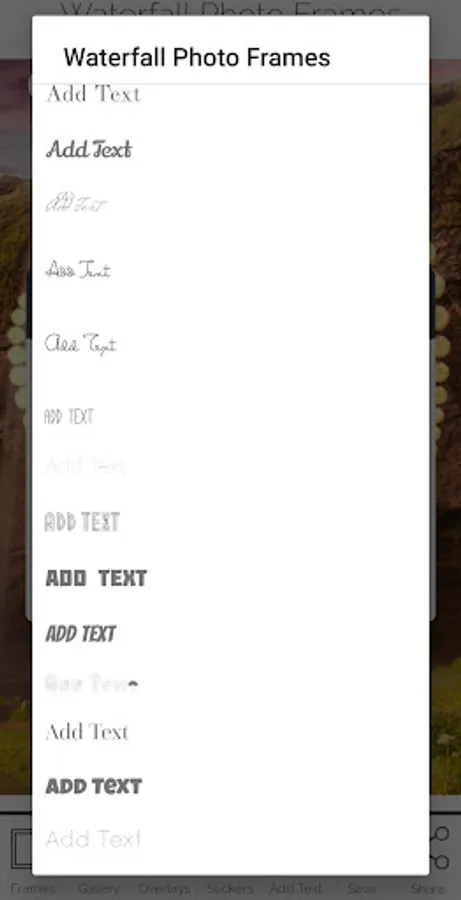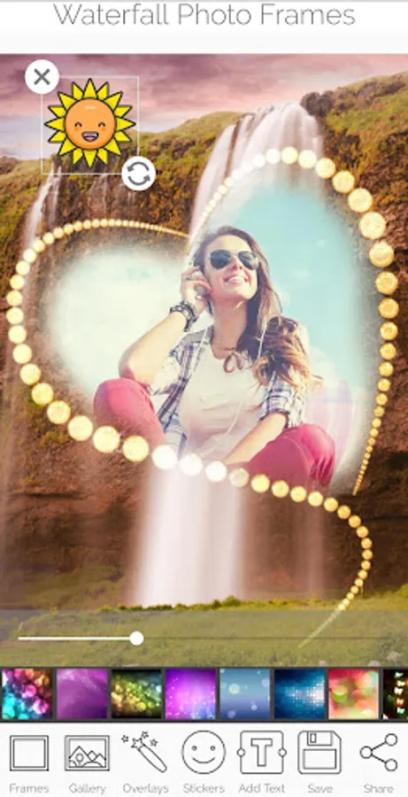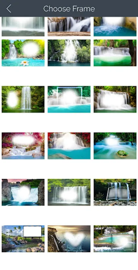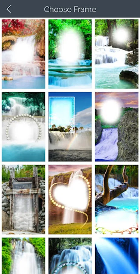 If you download this application you will have plenty of different waterfall photo frames to enrich your photos. Choose a picture from the gallery or take a picture of yourself or your loved ones and use photo frame effects on them. Save those beautifully decorated pictures in your device or share them through social networks. Download favourite waterfall frames, use it all the time and transform old pictures into new. Lively color frames will enhance every picture, even boring ones will look very cheerful. You will have the best framed pictures for sure! Popular and colorful frames with waterfall picture frames that everyone will love.