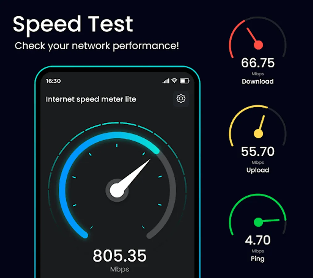 Internet speed meter is a professional network speed checker that provides details such as download speed, upload speed, network signal strength and ping rate. It also checks the 2G, 3G, 4G, 5G, LTE Connection, DSL internet & hotspot connection. The frequency with perfect details will show on Analog speed meter.