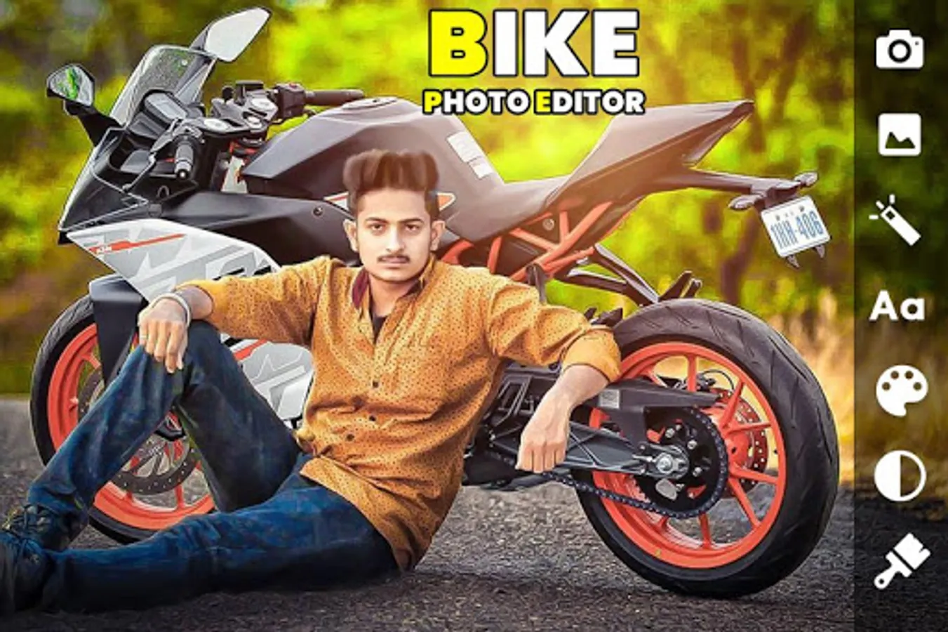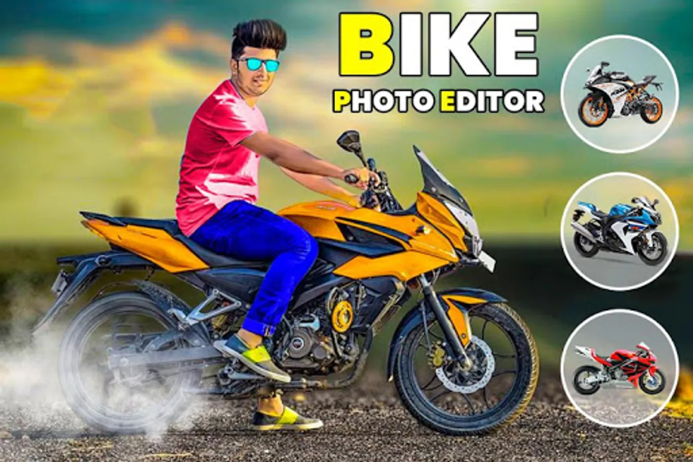 Bike photo Editor Create Bike Photo Frame with your photos and your loved ones and share them with friends and family to show off you love with Racing Bike Photo Frame Enter your new professional photo studio and make your ordinary image album look like the most popular picture art gallery.