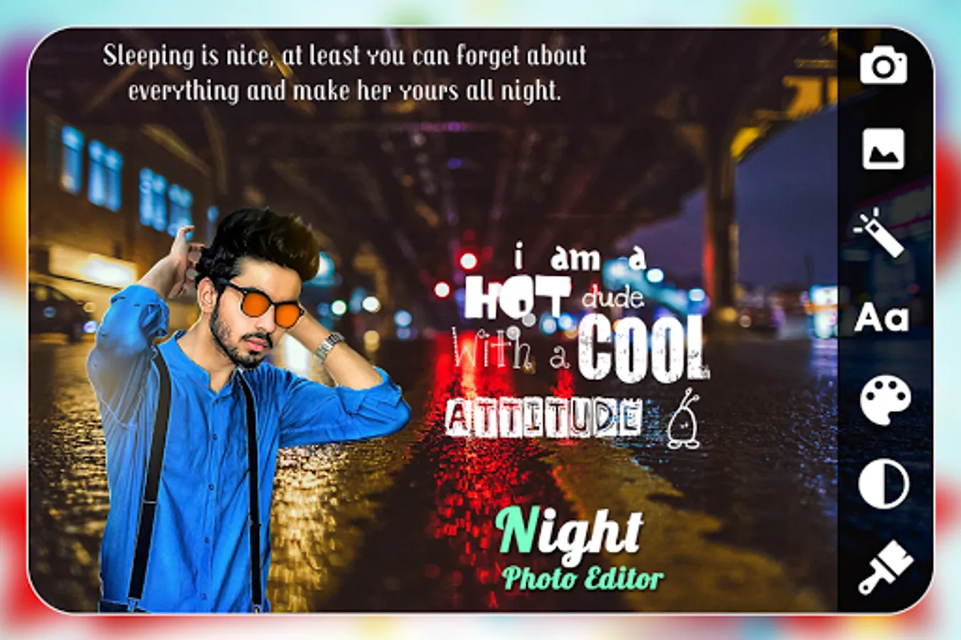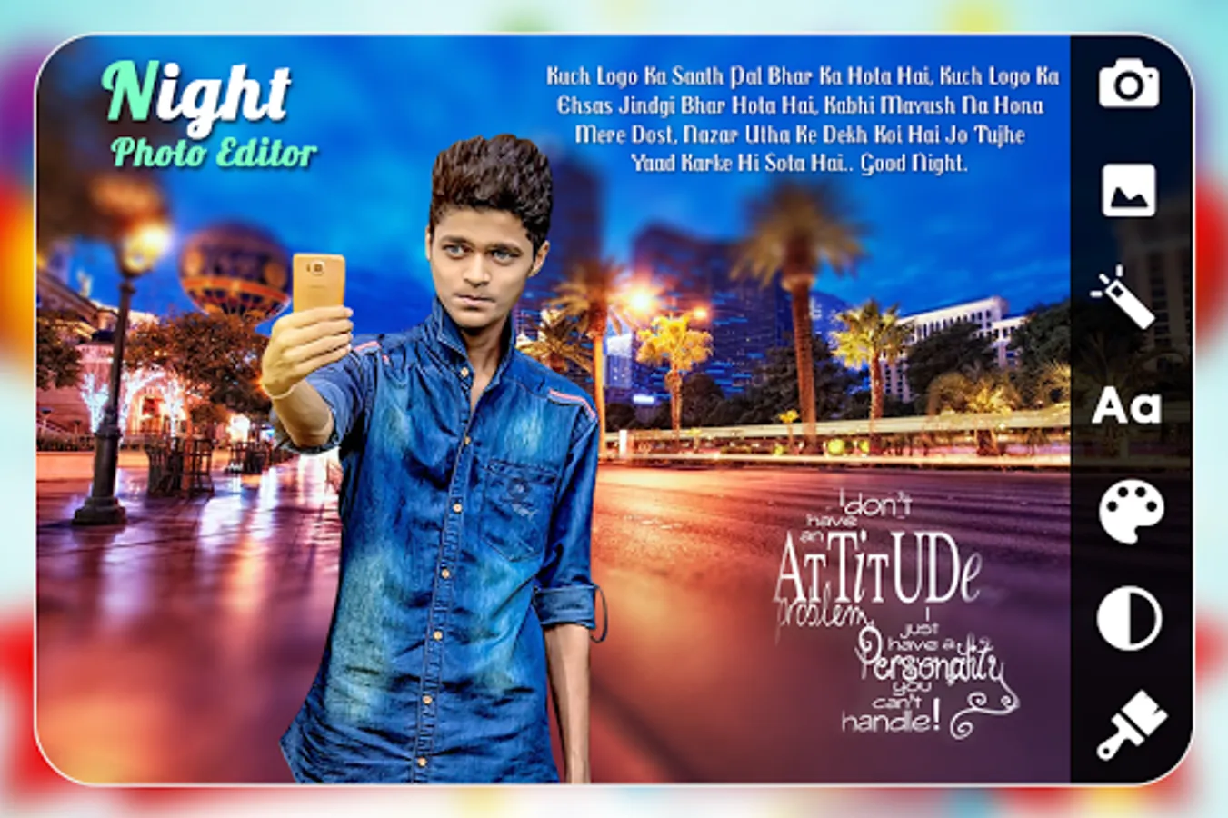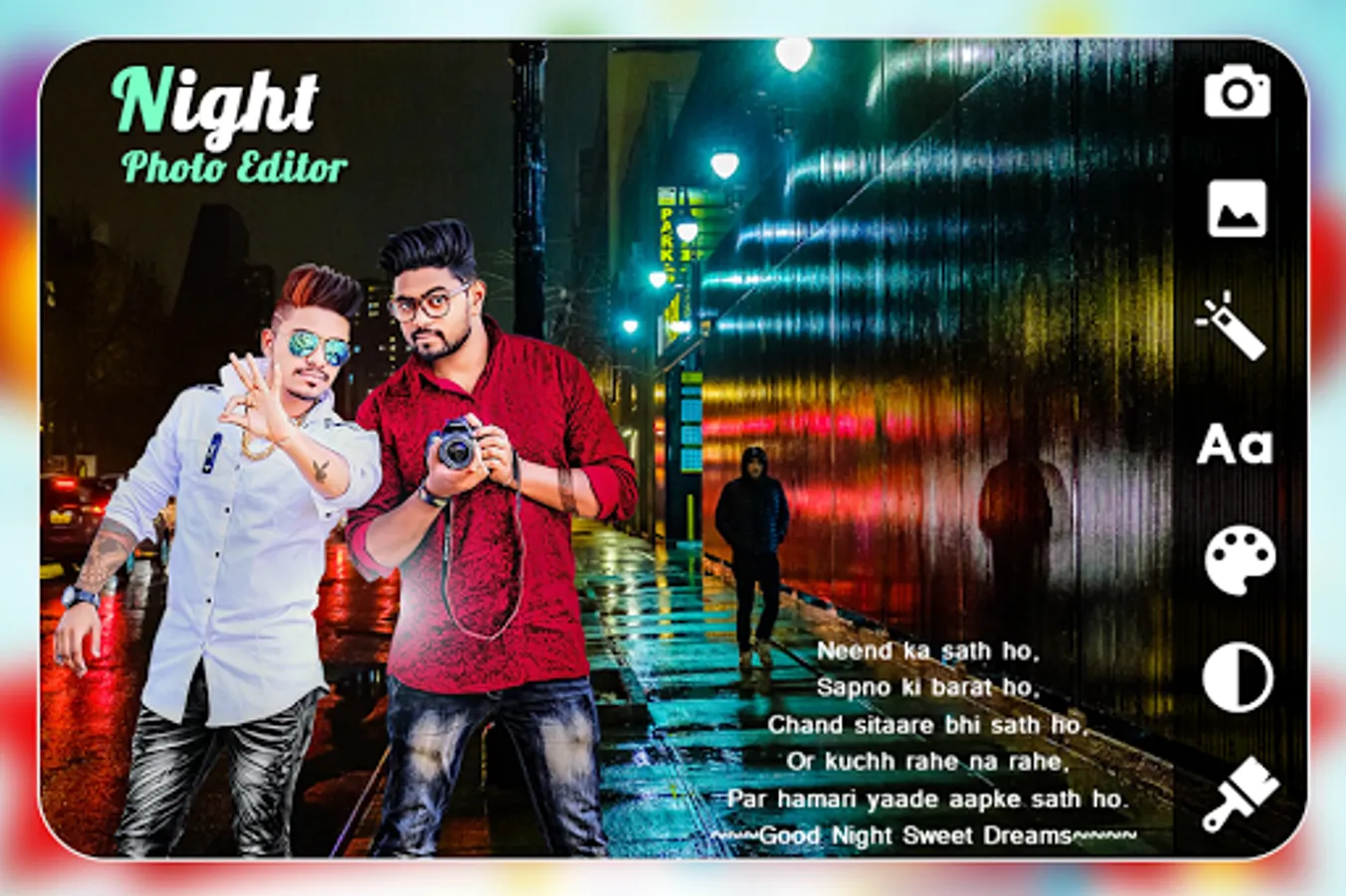 Night Photo Frame add some of the most beautiful camera photo effects to show your creativity and beautify all the fantastic moments in your life to make you never forget them.