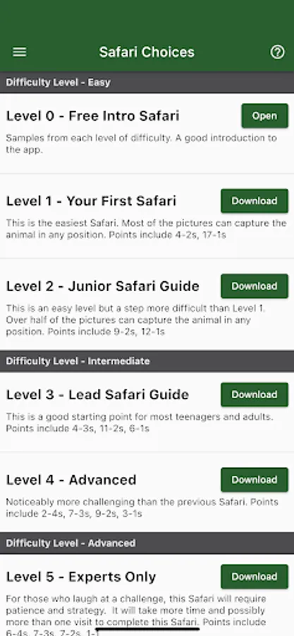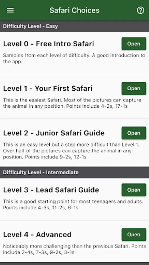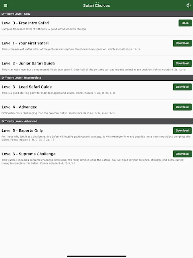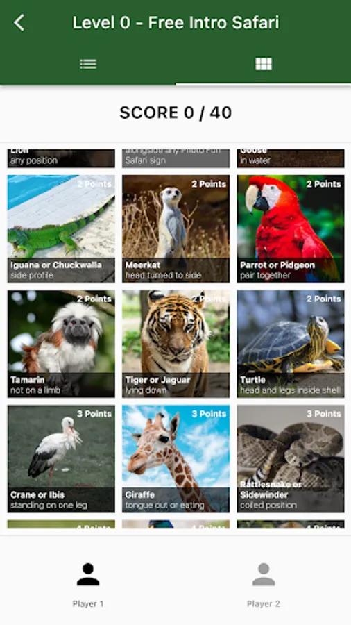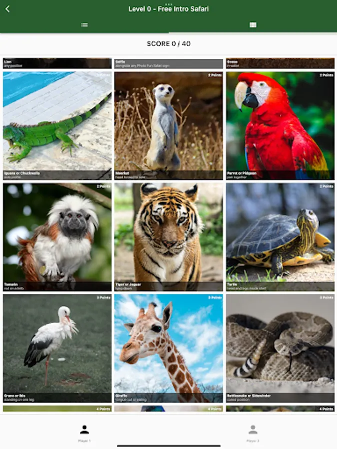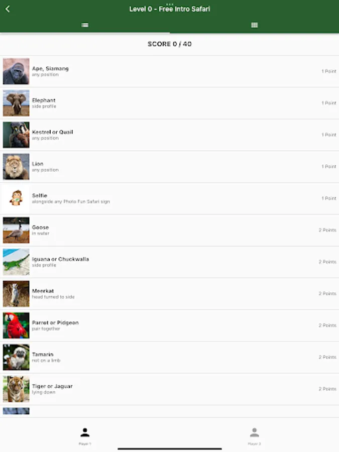 Photo Fun Safaris includes features that significantly set it apart from other scavenger hunts. Each Safari challenges you to take pictures of animals in various situations – find a bear lying down, or a peacock showing off its tail-feathers, or a lion with its mouth open! Safaris are appropriate for all ages, with options and difficulty levels suitable for young children, teens, and adults. Two people, such as a parent and child, can use the same phone and complete different Safaris.